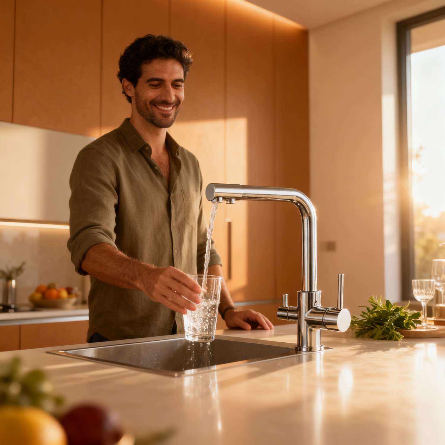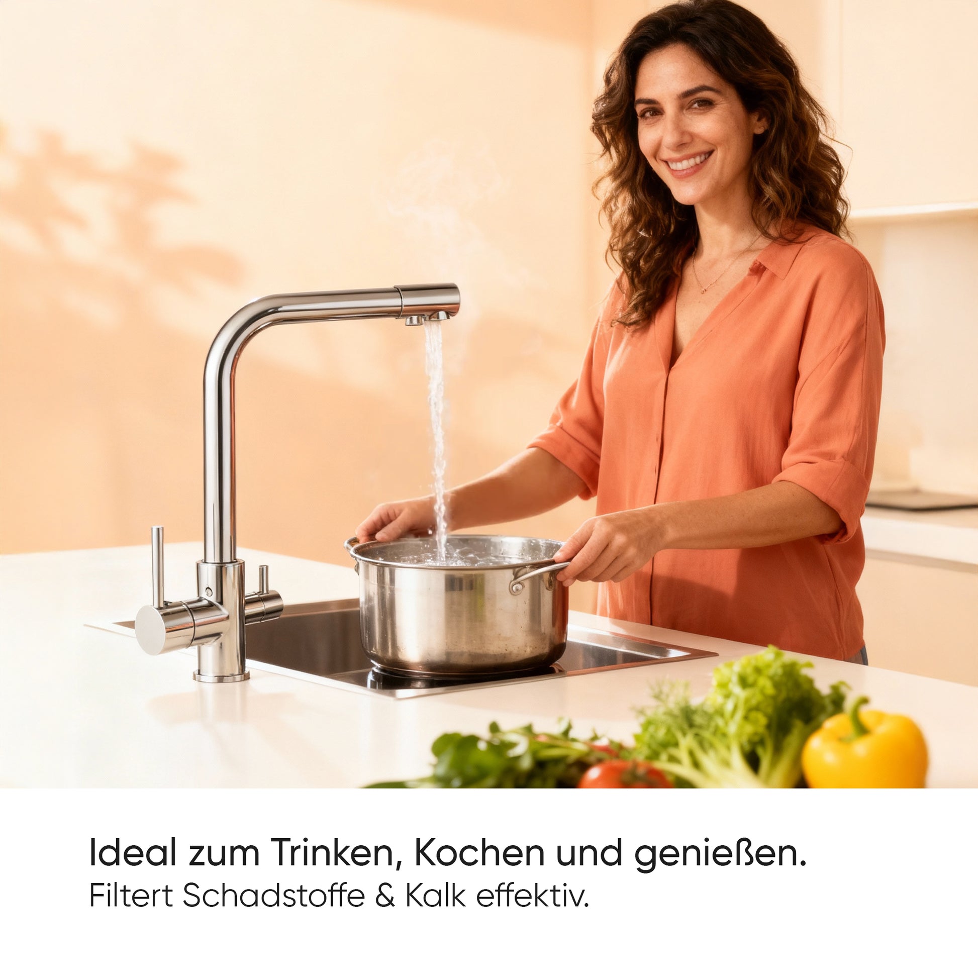 Frisch gefiltertes Wasser direkt aus dem Hahn – so selbstverständlich, wie es sein sollte.