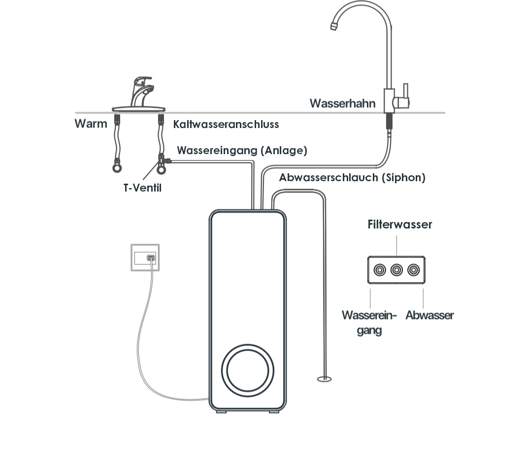 - Anlage liegend oder stehend unter der Spüle platzieren.