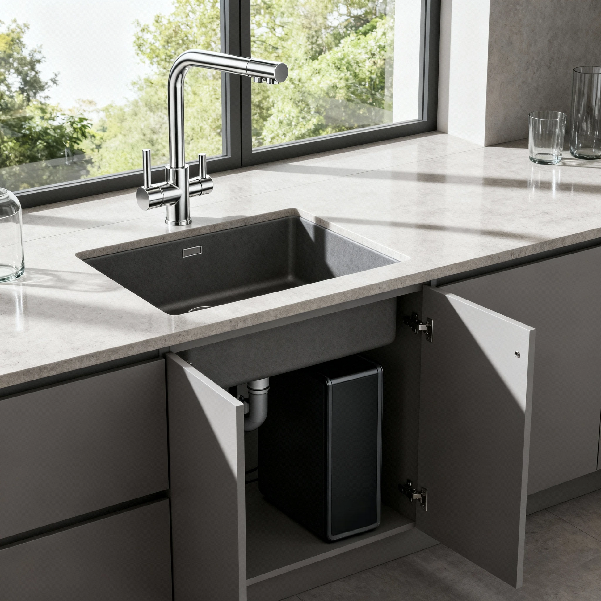 Perfekt für kleine Küchen, enge Spülenschränke oder Mietwohnungen.